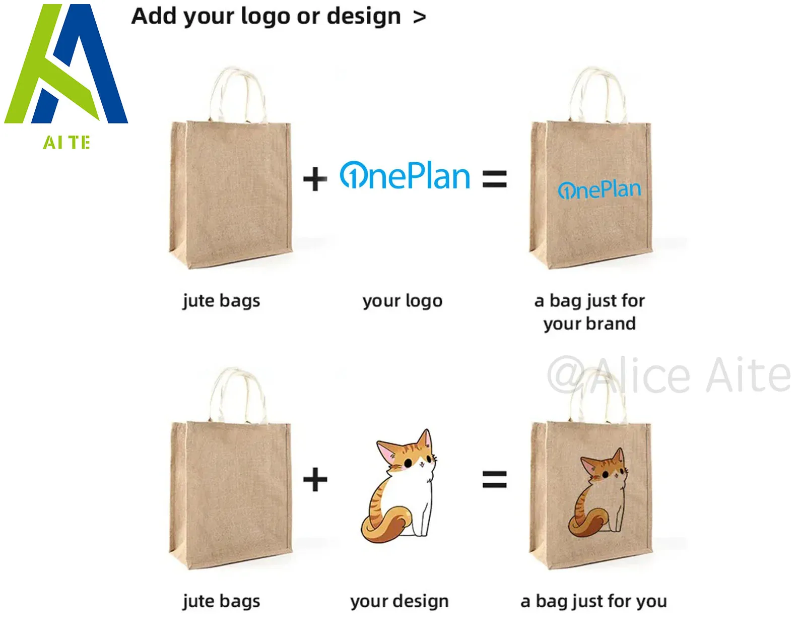 High Quality Burlap Styles Wholesale Eco-Friendly Large Natural Burlap Bags Jute Tote Bag Custom Logo Color Printed for Gifts