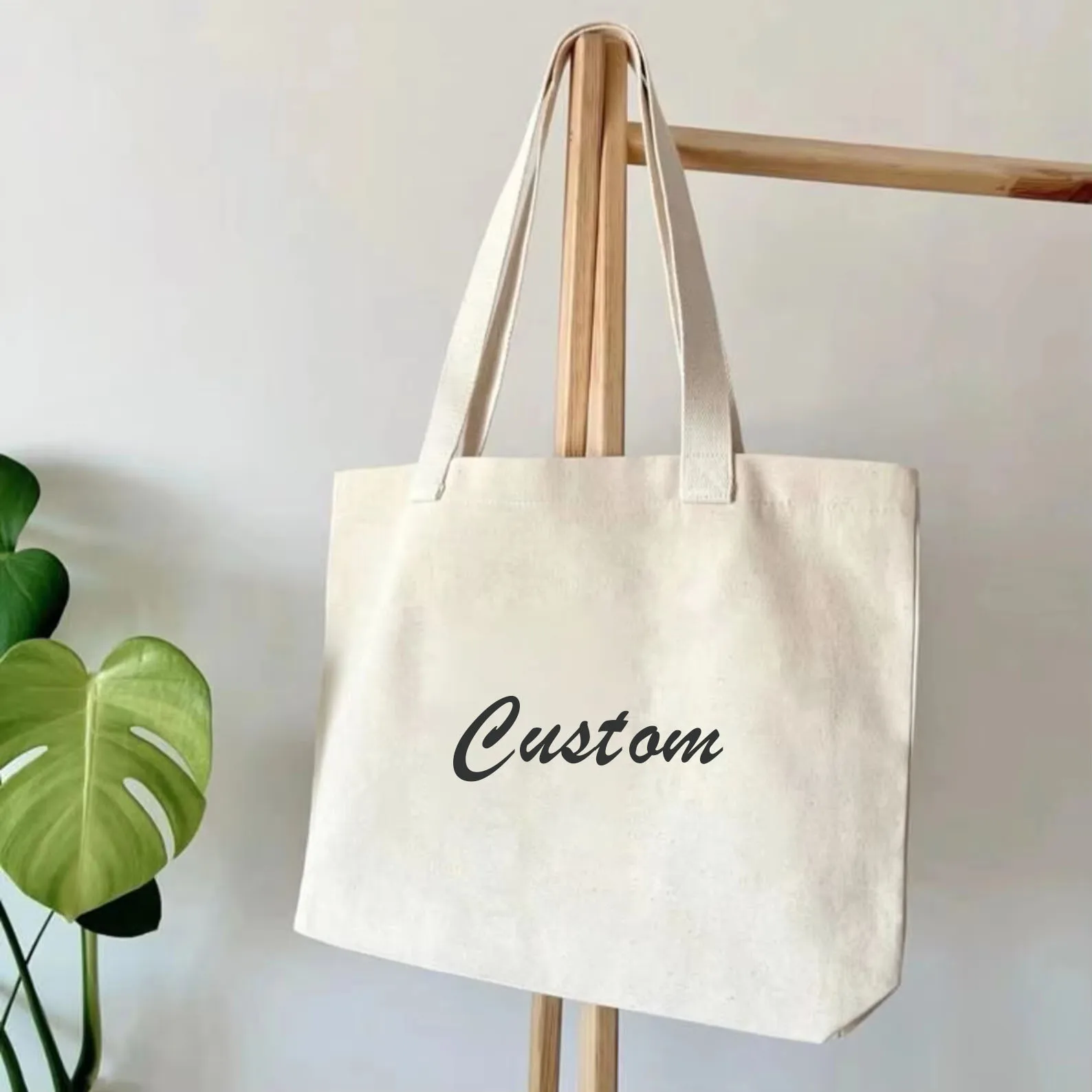 Personalized Reusable Foldable Canvas Cotton Tote Bag Customizable Logo Printed Recyclable Blank Calico Shopper Bags