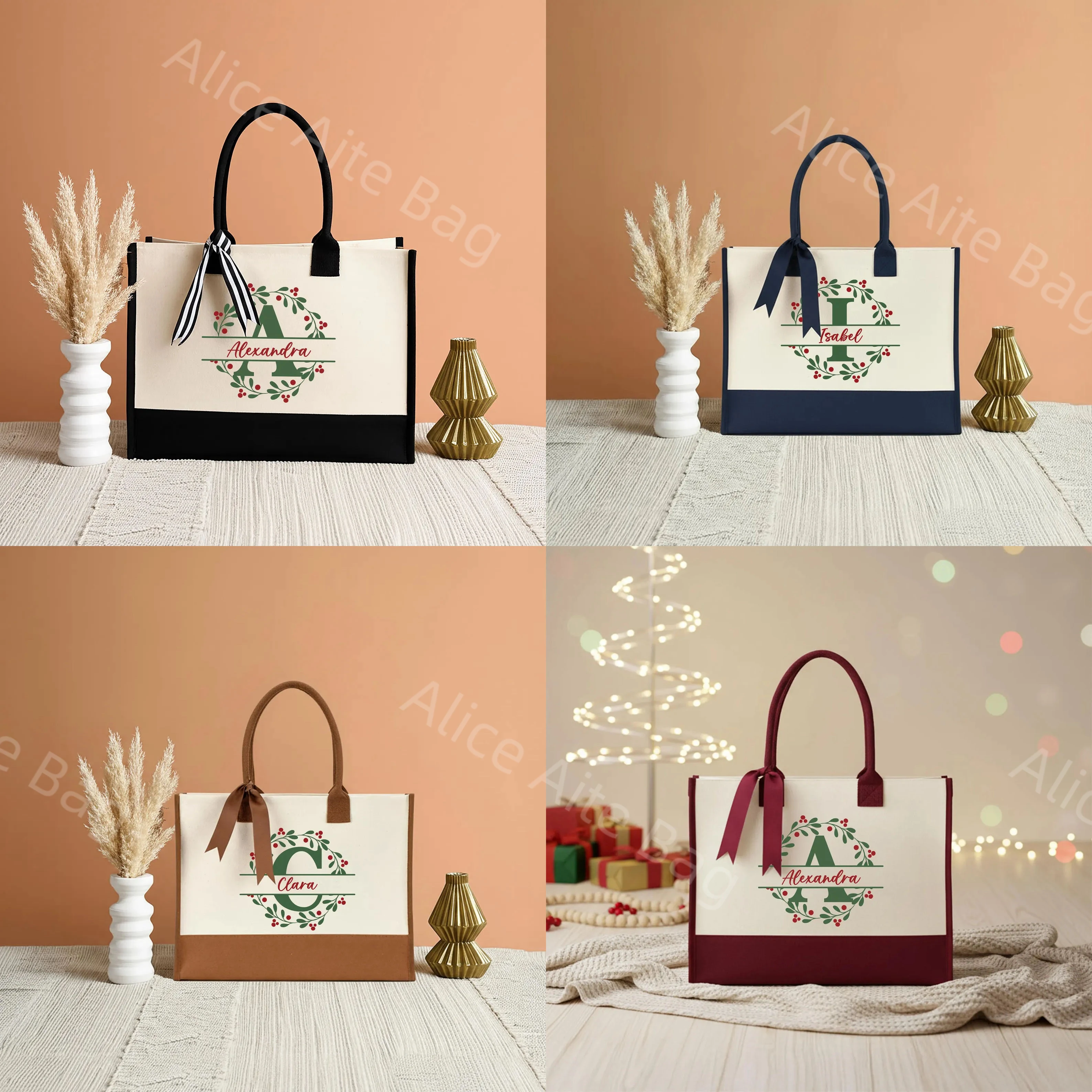 Red Christmas Decorations Gifts Canvas Multi-Colorful Shoulder Tote Bag High Aesthetic Value Waterproof Storage Travel